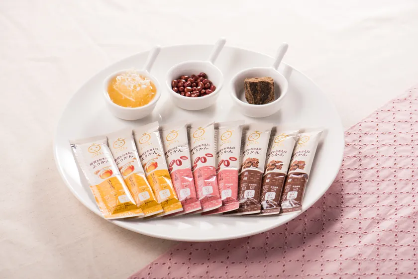 キレイになりたい・健康に気をつかいたい女性や、お腹のでっぱりが気になる男性など幅広い方々に、その日の気分に合わせて「こし餡」「はちみつ」「黒糖」の3種のフレーバーから楽しめる羊羹を提供いたします。