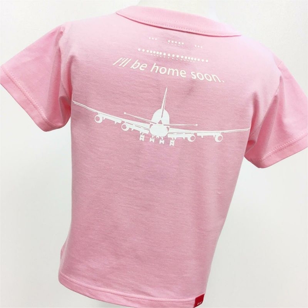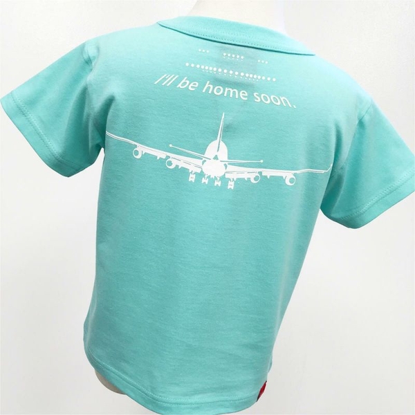 バックには着陸態勢の飛行機と「I’ll be home soon.(もうすぐ帰るよ)」