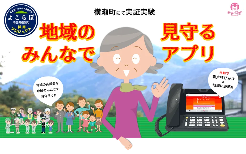 アプリ開発技術・原体験をもつリバティ・イノベーションと、情報通信機器の開発・製造・販売を行い高齢者に優しい電話機型端末「AIO-51」※1を販売するナカヨの2社が協力し、横瀬町が運営する「人口減少に立ち向かうために、企業や個人から新しい事業・研究・企画などを町に呼び込む仕掛け、官民連携プラットフォーム『横瀬町とコラボする研究所』通称“よこらぼ”」を通じて、横瀬町に住む高齢者を対象に見守りサービスアプリ「みまサポ」の有用性・課題抽出を目的とした実証実験を行います。