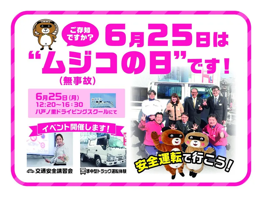6月25日は「ムジコ(無事故)の日」です。交通事故ゼロを願う私達にとっては、「ムジコの日」は特別な日です。