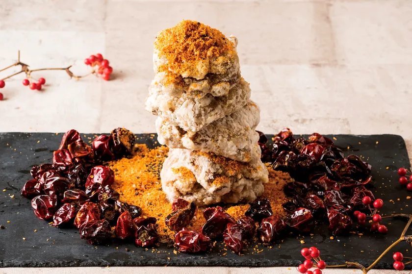 ガーリックとブラックペッパーが効いたパンチのある味わいのチャーハンに、自家製XO醤が香るオムレツを乗せ、とろみのある牛肉のオイスターソース炒めをかけました。手軽なワンプレートでありながら、XO醤に含まれる干し貝柱や干し海老、そして世界三大ハムの1つに数えられる金華ハムの凝縮された旨みは、家庭では味わえない絶品メニューです。