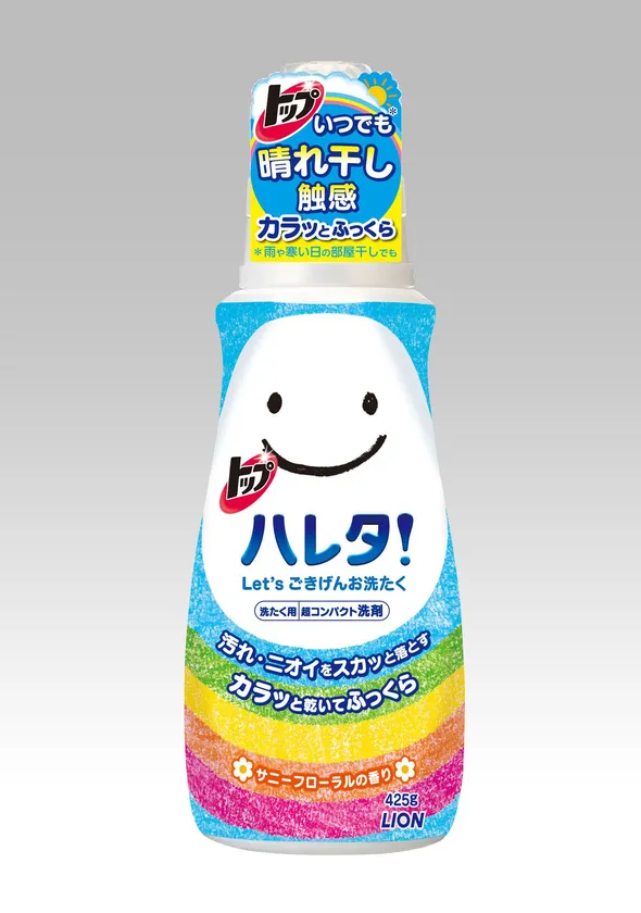 そこでこの度、晴れた日の「乾き上がり」に着目し、晴れた日はもちろん、雨や寒い日の部屋干しでも、洗濯物がカラッと乾いてふっくら仕上がる超コンパクト衣料用液体洗剤『トップ ハレタ』を新発売いたします。『トップ ハレタ』を使うことにより、洗濯を行うタイミングへの気遣いをなくし、時間に追われる現代女性の様々なライフスタイルを応援していきます。