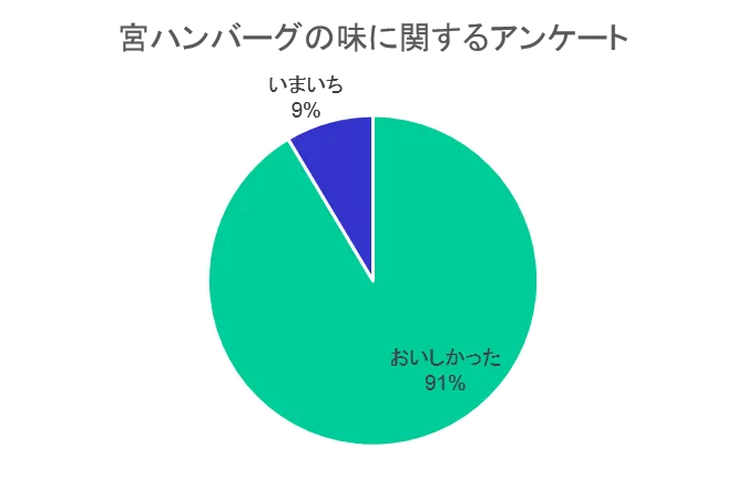 先行店舗で牛100%使用「宮ハンバーグ」を召し上がった方745名にアンケートを取った結果、「おいしかった」が9割以上と高評価を頂いたこともあり、グランドメニュー導入に至りました。
