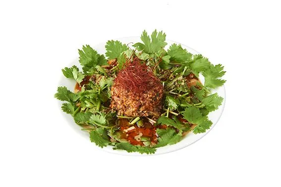 マーラージャンとドレッシングがひき肉・野菜とマッチするボリューム満点の一杯。
