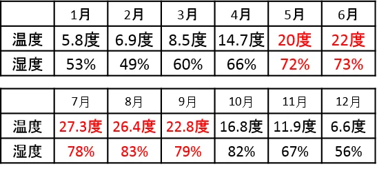 気象庁のデータによると、温度が20度~30度、湿度が70%以上の状態は、梅雨が始まる5月、6月から梅雨明け後の9月まで続いており、「梅雨明け後」もカビが増殖するには適したシーズンであるといえるでしょう。