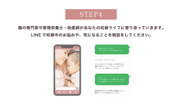 「mamaflora」とは、赤ちゃんが生まれる前から健やかな成長を支援することを目指し、一人ひとり異なる腸内細菌データに基づいて、ママと生まれてくる赤ちゃんの健康をサポートする腸活サービスです。mamafloraは、一人ひとり異なる腸内細菌データにあわせて、妊娠中のママの栄養バランスを整える食事指導で、ママと生まれてくる赤ちゃんの健康をサポートします。