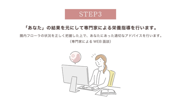 その後、管理栄養士などの専門家による栄養指導や生活改善に関するアドバイスを通じて、あなたの腸内細菌に合った食事や生活習慣がわかります。