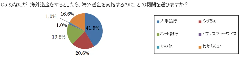 海外送をする際、「大手銀行を選ぶ」が41.5%
