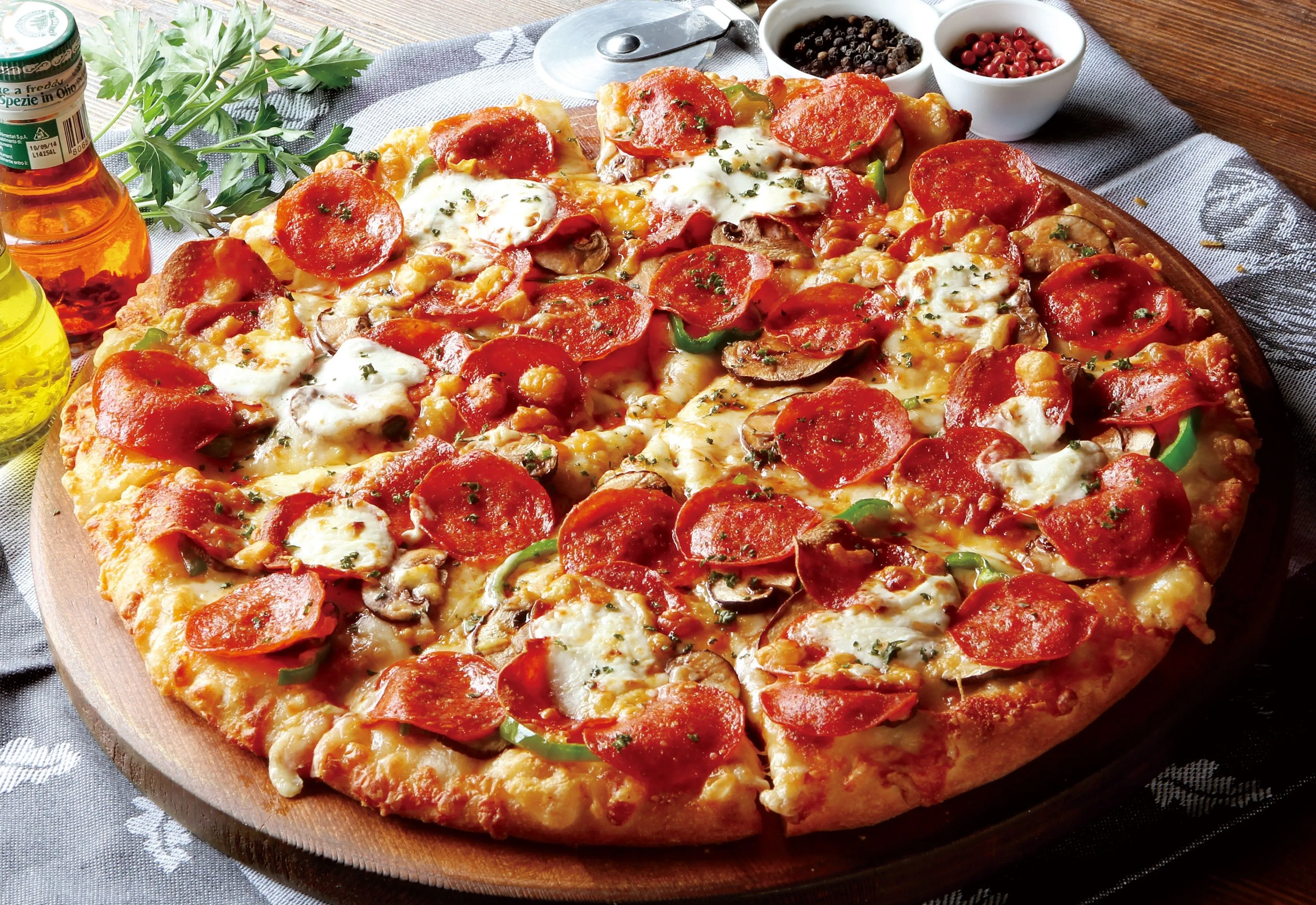 ◆トッピング:特製トマトソース・熟成サラミ、マスカルポーネチーズ・マッシュルーム・パルメザンチーズなど
