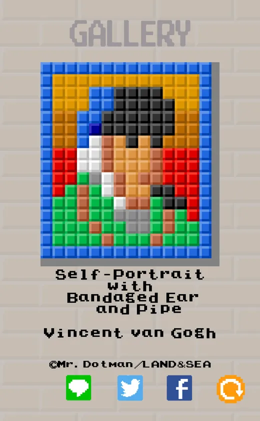 ステージを進めると、8面ごとに「ディグダグ」「ファミスタ」「マッピー」「ゼビウス」などのグラフィックデザインを担当した小野.Mr Dotman.浩氏が手がけたドット絵の名作絵画が収集できます。