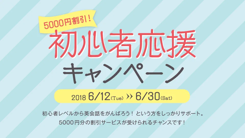 業界最安値レベルの完全月謝制英会話教室『英会話教室 リンゲージ』では、6月12日(火)より『5,000円割引!初心者応援キャンペーン』を開催中です。