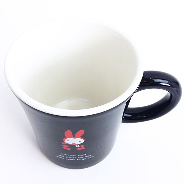 シンプルデザインの、ミッフィーマグカップです。内側にミッフィーがデザインされているさりげなさに、キュンとしますね。持ち手も幅広で安定感があります。