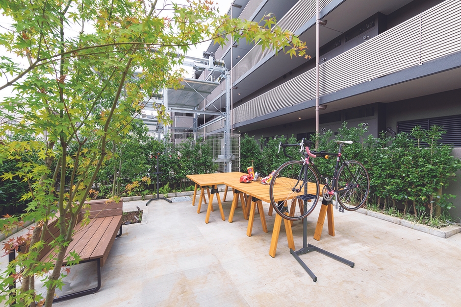 1階の敷地内に、誰でも自由に利用ができるDIYスペースを用意しています。