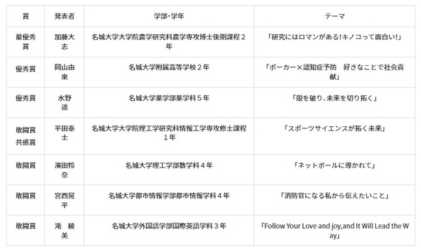 【名城大学】開学100周年記念企画「REALIZE AWARD 2024」を開催/ 加藤大志さん(農学研究科博士後期課程2年)が最優秀賞に輝く