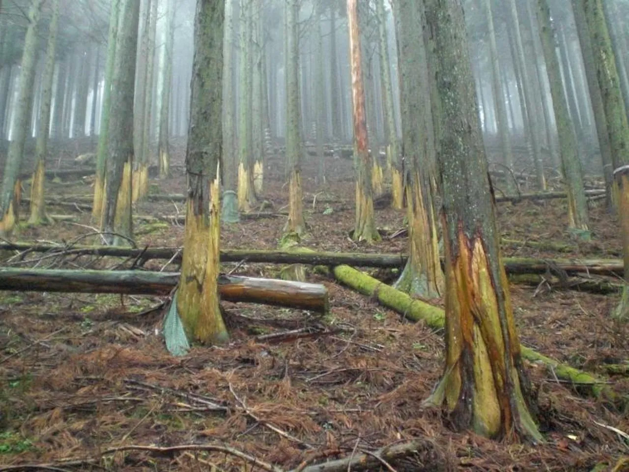 スギ人工林におけるシカの剥皮被害(滋賀県多賀町)(出典:林野庁)