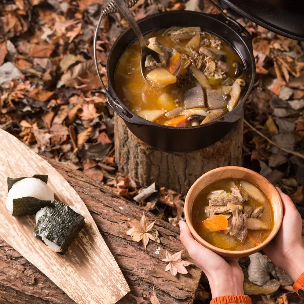 ツアー中盤での昼食は、地元猟師が慣れ親しんだ、猪肉と秋野菜を煮込んだ鍋料理と、山椒を混ぜ込んだおにぎりを用意しています。猟で冷えた体をあたため空腹を満たします。(*食事内容は状況により変更になる場合があります。)