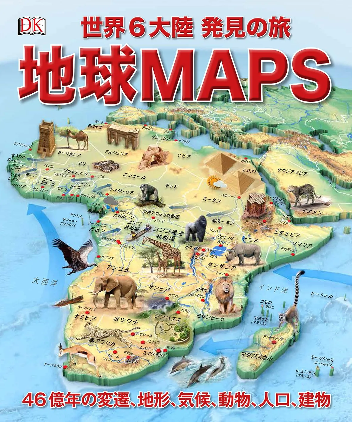 地球46億年の変遷、ヒマラヤ山脈の山頂からアフリカの熱帯雨林、ヨーロッパの古代建築からアジアの巨大都市まで、地球6大陸、3大洋、2極地の地形、気候、見どころ、生き物、人口、夜景、巨大建造物、歴史遺産など、驚くべき地球の姿を魅力いっぱいの3Dイラストで解説。地球上で一番暑い場所はどこ、地球で一番大きなチョウはどこにいる、人口衛星から見た夜の大陸など、地図上で地球のさまざまな側面を紹介します。立体感あふれる60点以上の特製3D地図とわかりやすい文章で、お子さまも楽しみながら世界地理の知識が身につきます。