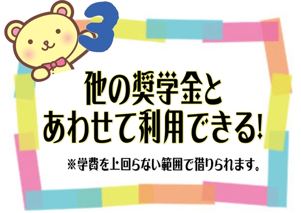 日本学生支援機構などの奨学金制度と併用する事ができます。