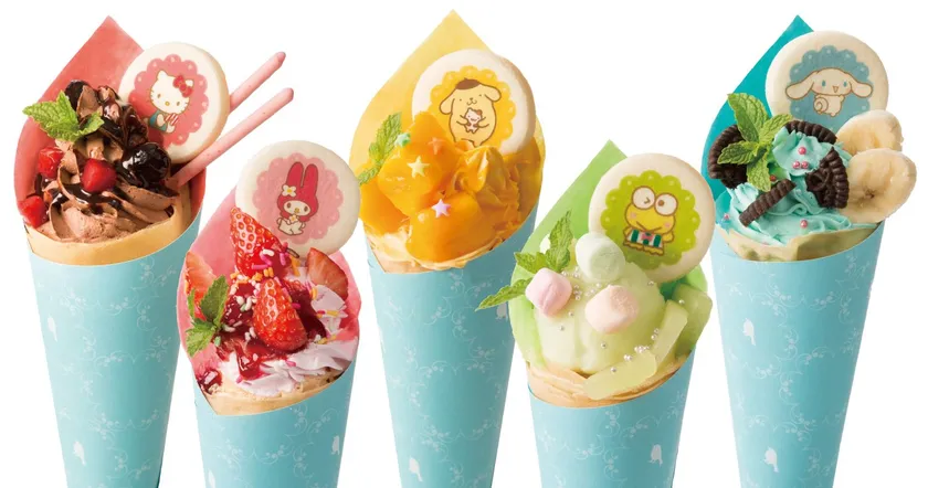 サンリオの大人気キャラクターたちが、この季節にぴったりのキュートなクレープになって登場!それぞれのキャラクターをイメージしたクレープは見た目も味もお楽しみいただけます。全種類食べたくなる、かわいさいっぱいのクレープを是非お召し上がりください。