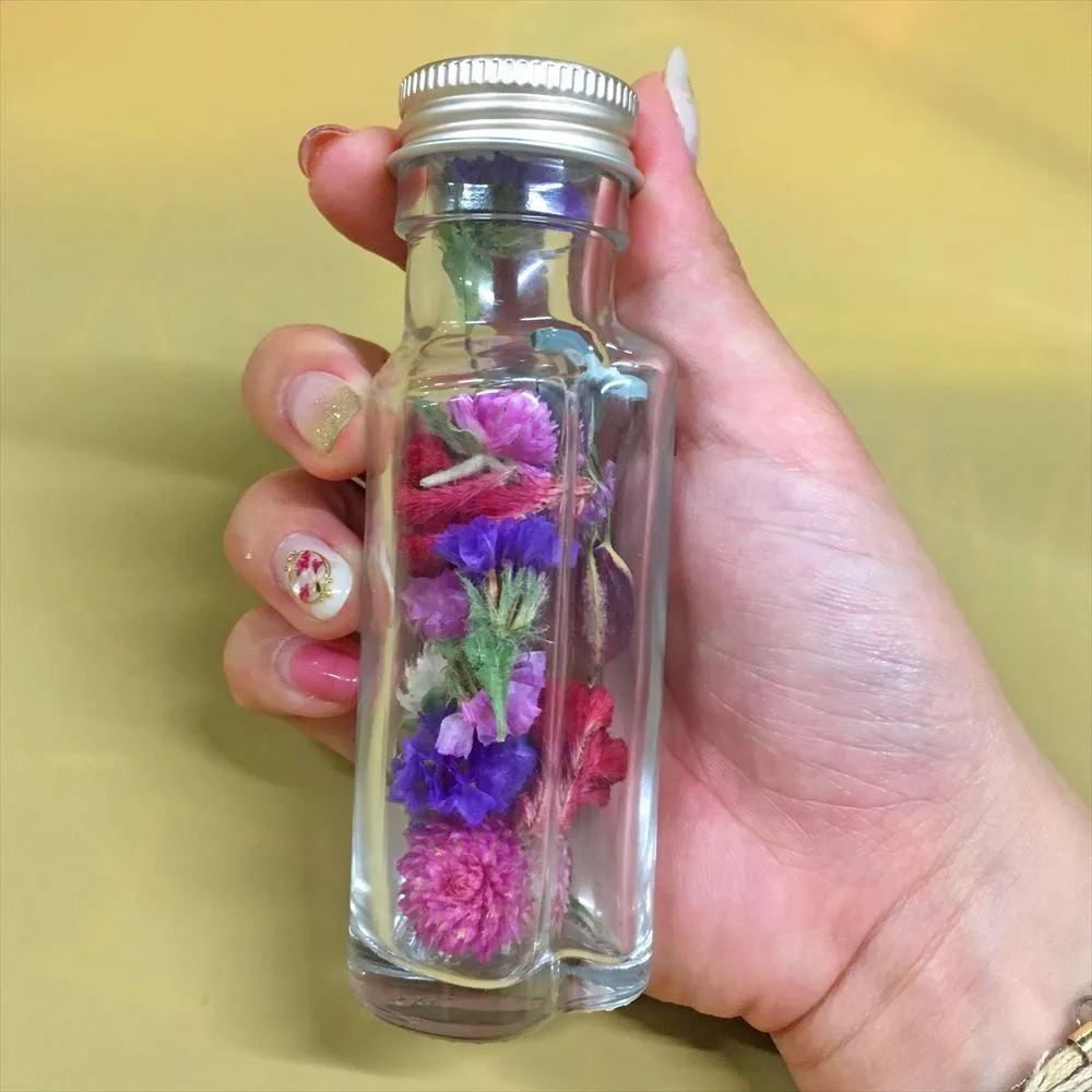 ガラスボトルの中に「カスミソウ」のプリザーブドフラワーやドライフラワーを自由に選んでつめて、自分だけの花の世界をつくる「マイリウム」のワークショップを開催します。