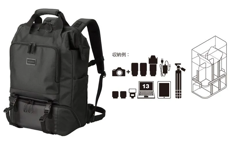 上下2気室構造の大容量カメラバックパックです。