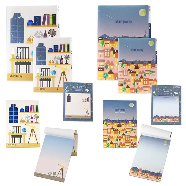『スターパーティ ステーショナリー』4アイテムに、 新柄2種「宵の街並」「天文学者の部屋」が登場