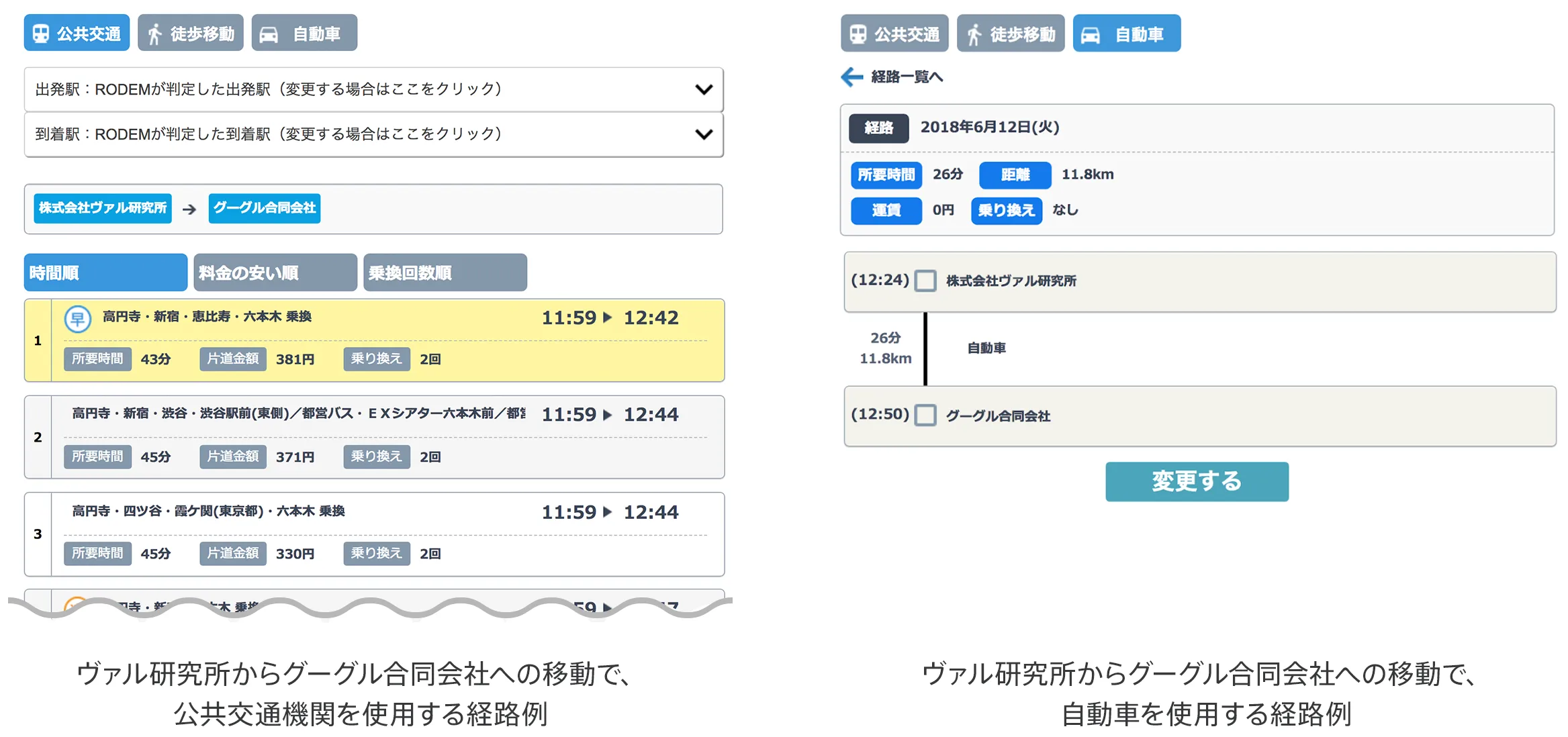 乗り換え案内サービス「駅すぱあと」を提供する株式会社ヴァル研究所(本社:東京都杉並区、代表取締役:太田信夫)は2018年6月20日(水)、スケジュール調整から交通費精算までを自動化するビジネス・サポートサービス「RODEM(ロデム)」において、新機能「自動車ルート算出機能」のα版をリリースします。