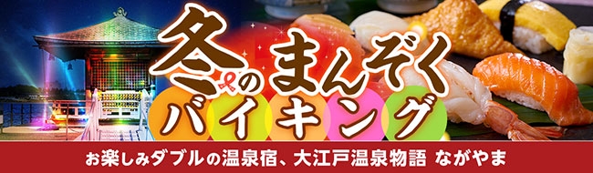 12月17日スタート 「NAKED夜さんぽ -片山津温泉-」と12月27日スタート 「冬のまんぞくバイキング」お楽しみダブルの温泉宿、大江戸温泉物語 ながやま