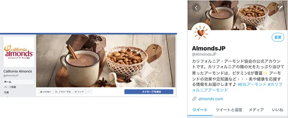 この度開設する日本版公式TwitterとFacebookでは、最新の調査・研究結果に基づくアーモンドの健康・美容効果をはじめ、アーモンドレシピやアーモンドキャンペーンなど、毎日のアーモンドライフに役立つ情報をお届けしてまいります。