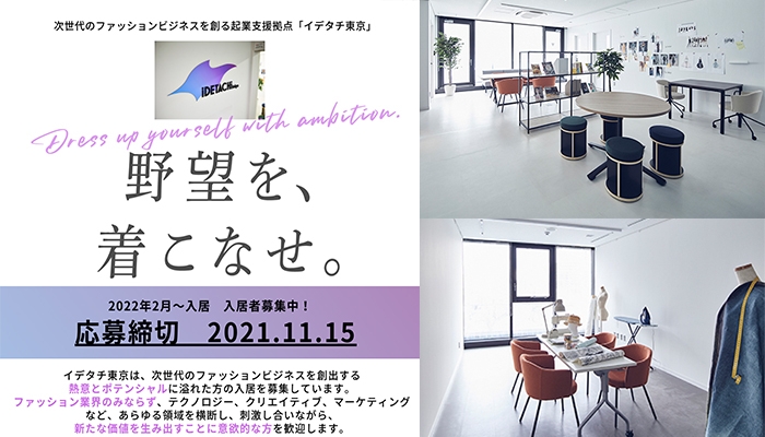 “次世代のファッションビジネスを創る”起業支援拠点 「イデタチ東京」が個室オフィスの入居者を募集。 11月2日(火)、6日(土)に入居希望者向け内覧会を実施。