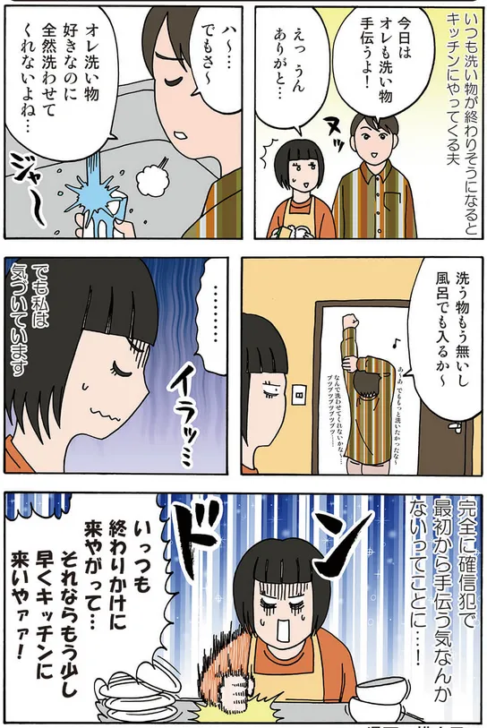 <あるある2:洗い物が終わりそうなときにやってきて、「手伝うよ」と声をかけてくる>