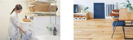 汚れが目立ちにくいクッションフロア、メンテナンス性に優れた床材、熱に強く汚れが拭き取りやすいキッチンカウンターの天板など、掃除やメンテナンスがしやすい素材を選んでいます。