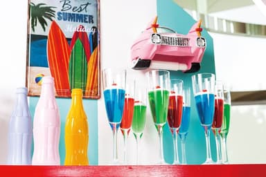 アメリカンダイナーの定番、クリームソーダをイメージした涼やかなゼリーや、レインボー州という別名がつくほど、虹とゆかりのあるハワイ州にちなんだレインボーケーキ、そしてムービージェニックな可愛い仕掛けを施したカラフルケーキなど、定番デザートや軽食など約40種類のメニューが並びます。思わず写真や動画を撮りたくなるような非日常空間で、夏にぴったりなカラフルスイーツをお楽しみください。