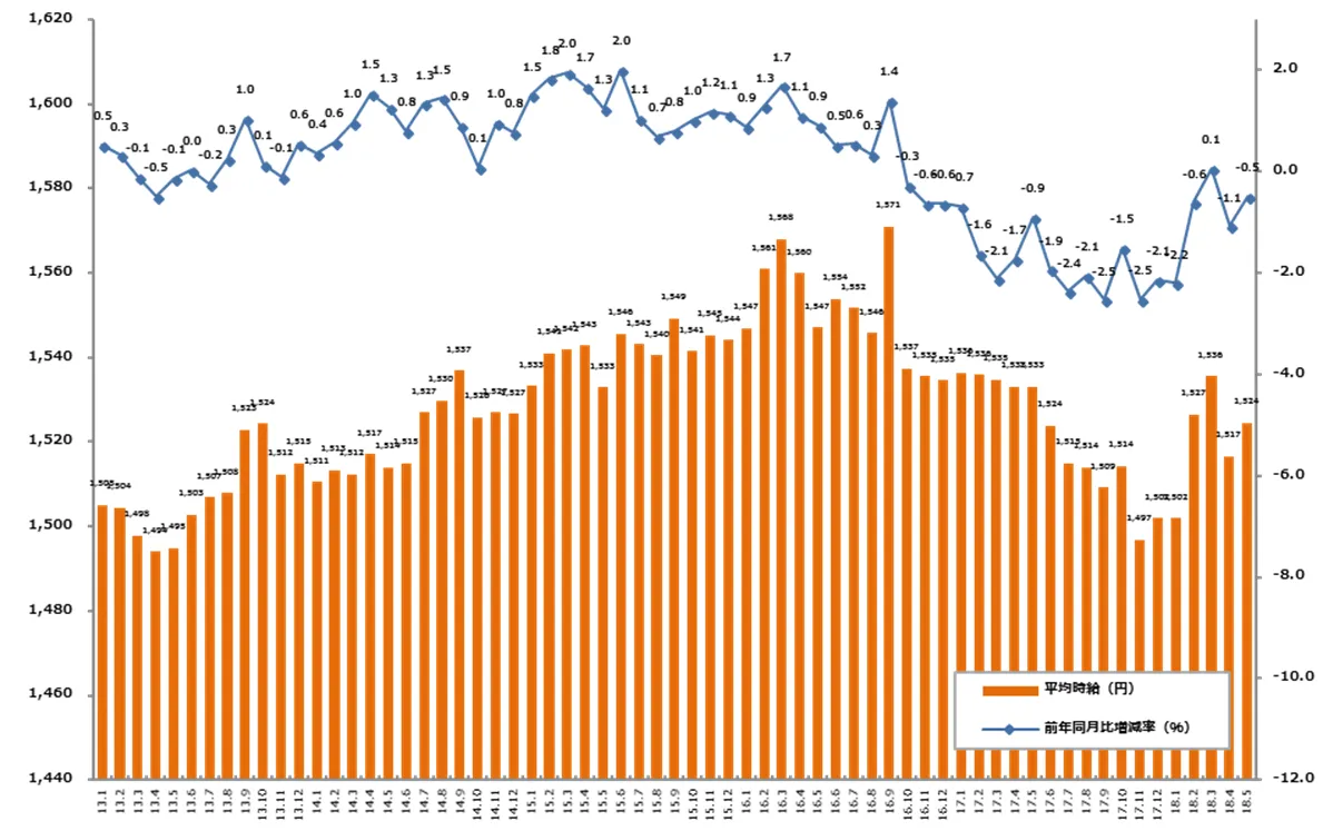 2018年5月度の派遣平均時給は1,524円。 クリエイティブ系・IT系が過去最高を記録。