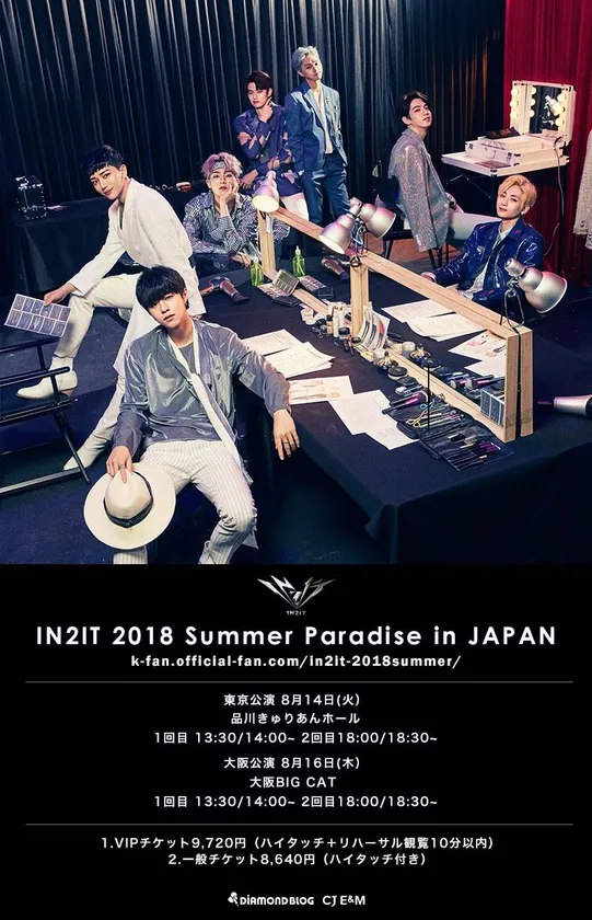 株式会社ダイヤモンドブログ(本社:東京都中央区、代表取締役社長:小田 隆雄、以下 ダイヤモンドブログ)は、バラエティー番組「少年24」で選ばれたメンバーで構成される人気K-POPグループのIN2ITのファンミーティング『IN2IT 2018 Summer Paradise in JAPAN』を8月14日(火)東京、16日(木)大阪にて開催いたします。