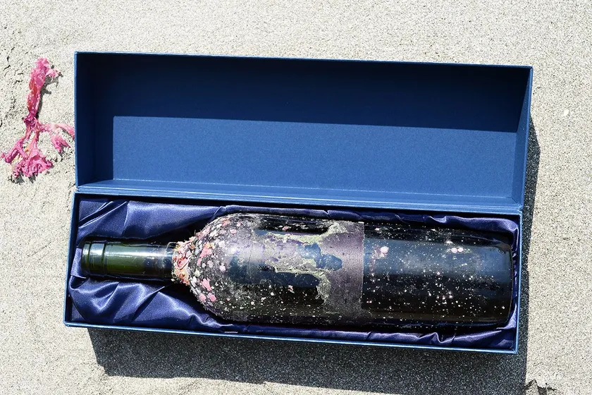 12月~5月下旬の約半年間、紫外線の届かない海底約15メートルの場所に沈め、半年の間おおよそ15度~19度という一定の海水温の中で熟成させました。