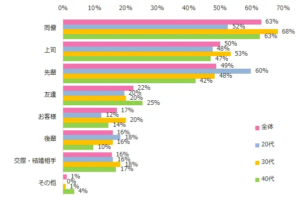 「先輩」と回答した方に理由を伺うと、「尊敬できる人だったから」というコメントが寄せられました。「同僚」と回答した方に理由を伺うと、「仕事を辞めた今でも付き合いがあるから」というコメントが目立ちました。