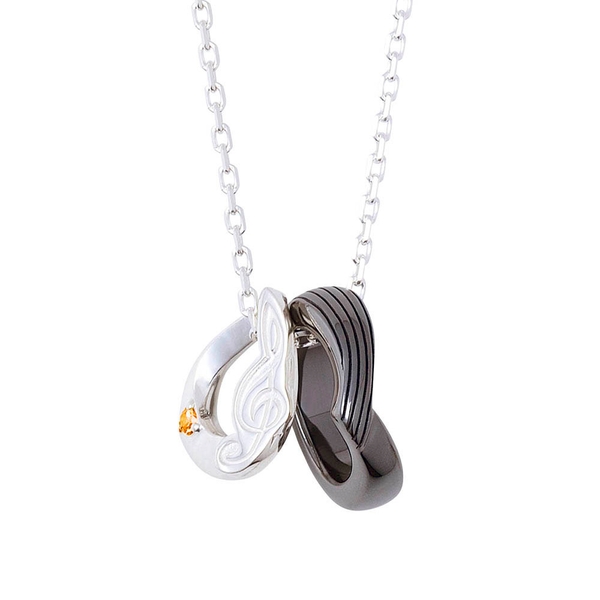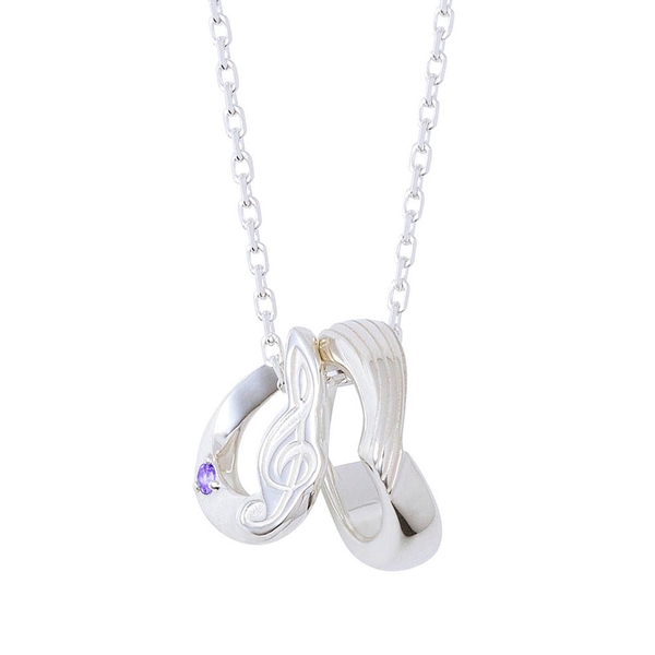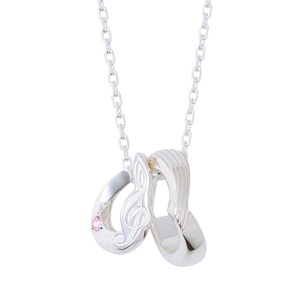 ト音記号パーツの表面にはイメージカラーストーンをセットし、V字パーツの表面には五線譜を取り込みました。内側にはさりげなく楽器アイコンを刻印しています。