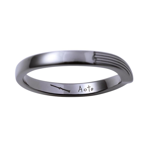 リングの表面には五線譜を取り込み、イメージカラーストーンをセット。