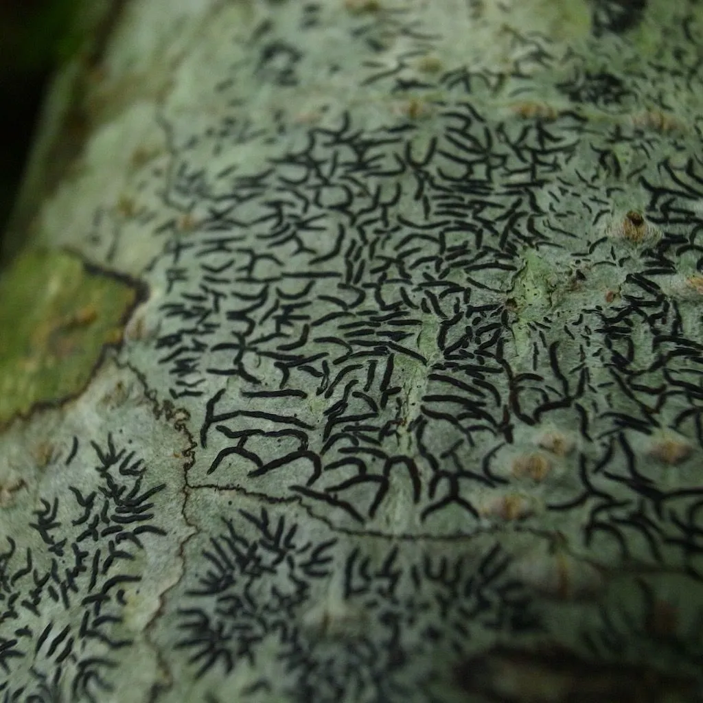 一見存在が地味な地衣類をルーペで見ると、文字のような形や、花のような形など、それぞれ独特な形をしています。当アクティビティでは、ルーペをのぞき、その個性的な造形美をじっくり観察します。