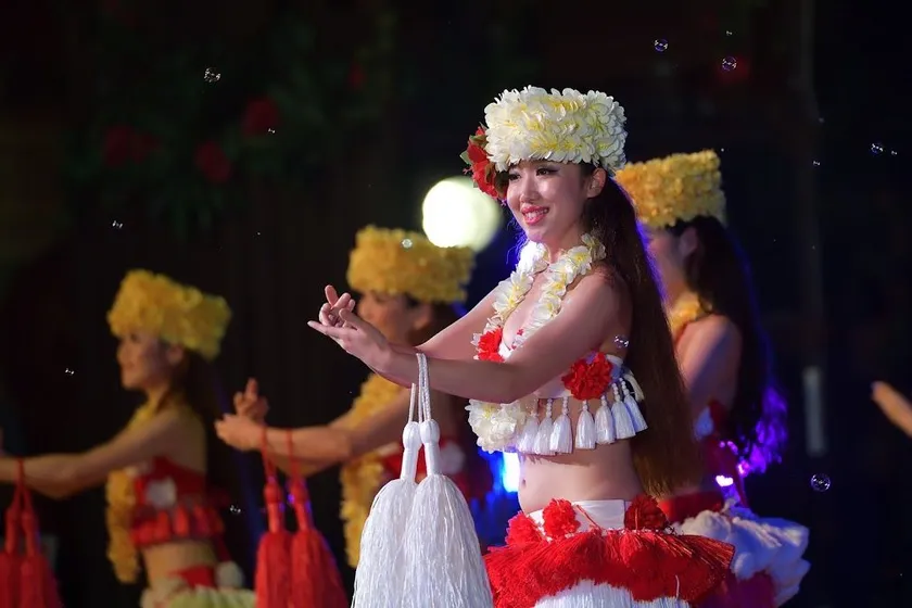 会場ステージでは、ウクレレ等のアーティストによるハワイアンミュージックの演奏や、スパリゾートハワイアンズによるフラダンス、国内唯一のファイヤーナイフダンスチーム「Siva Ola」によるファイヤーナイフダンス、フラ女将の皆さまが登場し様々なパフォーマンスを披露され、夏祭りを盛り上げます。