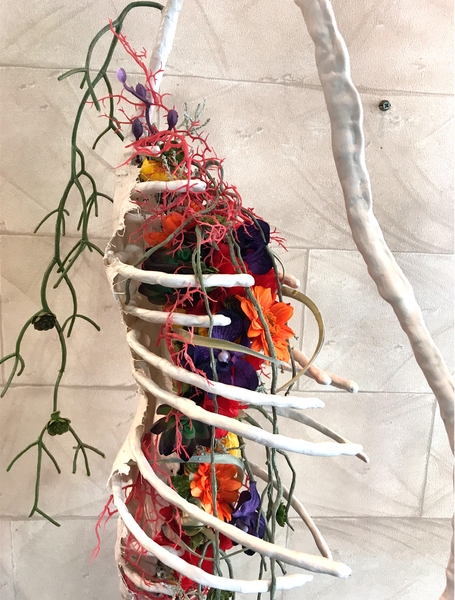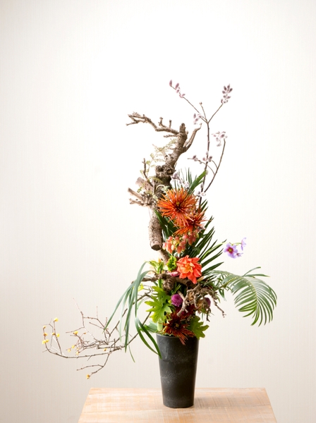 コンテストだとテーマがあります。しかし、抽象的なテーマなので解釈次第でいかようにもできる。だから、僕はそのときに作りたいと思ったものを表現します。つくる作品はその時々のマイブームによって変わりますが、この2〜3年は「生きる」というテーマで、生物や人体をベースにした抽象的なものをつくっています。一見これ何かなって思いますが、よく見ると人間の骨や臓器に見えるようなフォルムにしたり。虫に見えるようなフォルムにしたり。もともと綺麗なお花を、そういった別の見方で見せるっていうのはあまりないですから。お花を色として見せたり、形として見せたり、アートとして表現すること。今はそういう世界にどっぷり浸かってやっています。