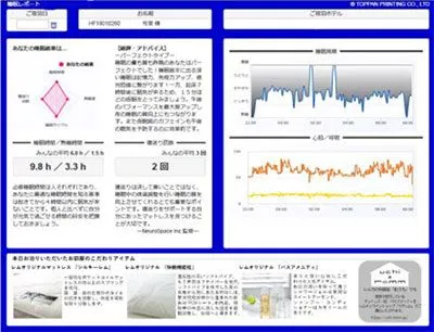凸版印刷が開発した生体センサー「SensingWave(センシングウェーブ)」をベッドマットレスの下に敷き、通常通り横になるだけで、睡眠状態を解析することができます。ご宿泊 いただいたお客様には睡眠の時間、周期、総評を記載した「睡眠レポート」をお渡しします。