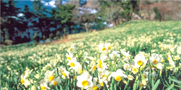 英国政府から日本に派遣されたブラントン氏が遠い故郷を思い、母国イギリスから取り寄せた水仙を植えたのがこの素晴らしい風景の始まりです。
