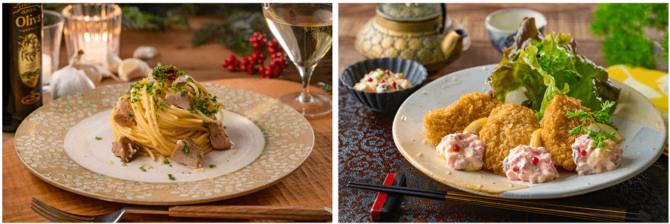 まぐろの角煮を使ったニンニクの香りが食欲をそそるペペロンチーノや、チキン南蛮風にアレンジした「まぐろde南蛮タルタルソース添え」は、ビールはもちろん、ご飯も進む美味しさです。