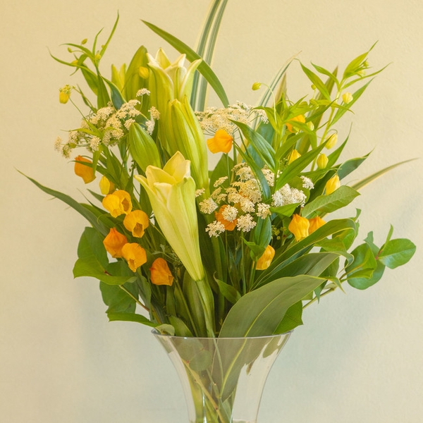 季節の花を取り入れつつ、「幸せ」「感謝」「思いやり」など、貰い手を想う花言葉を持つ種類を多く取り入れたアレンジメントになっています。 ※価格はすべて税込み、日本全国送料無料。※一部地域を除く