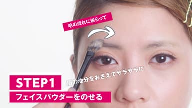 POINT:(1) 描いた眉をパウダー(フェイスパウダーとアイブローパウダー)で