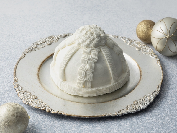 ふんわりと焼き上げたスポンジ、ピスタチオムース、苺のジュレと苺ムースを、ホワイトクリスマスをイメージして真っ白なクリームで包み込みました。