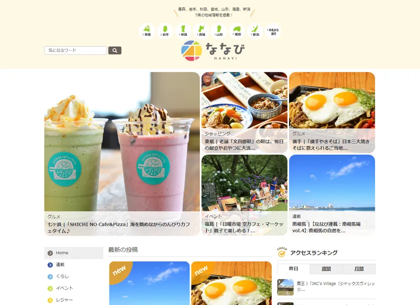 「ななび」は青森県・岩手県・秋田県・宮城県・山形県・福島県の東北6県と新潟県の情報を、現地からお届けする地域密着型情報サイトです。現地で直接取材した情報や、各自治体の発信する情報をもとに、地域住民の目線でその地域に根ざした情報を発信していきます。