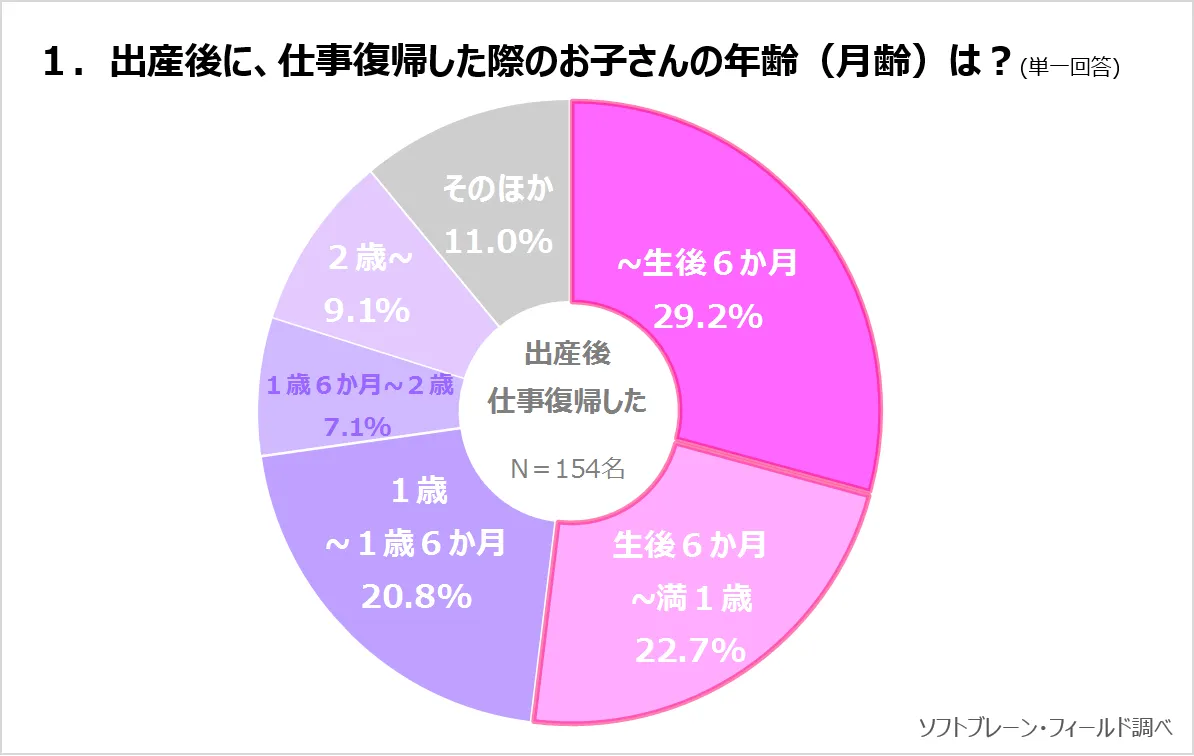 まずアンケートでは、出産後、仕事に復帰をした際のお子さんの年齢(月齢)について調査をしました。